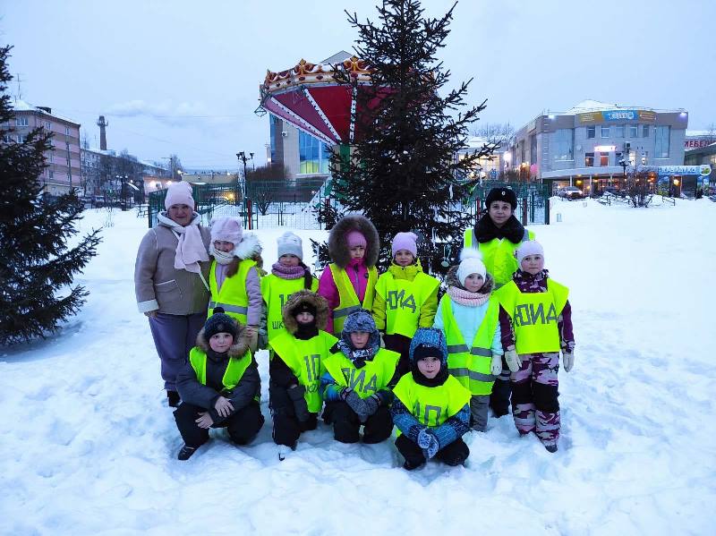 Учащимися 1 Б класса, совместно с родителями и инспектором по пропаганде БДД ОГИБДД старшим лейтенантом полиции Светланой Бадьиной, развесили на елку 30 значков со светоотражающей пленкой, 30 светоотражающих ленточек и 10 светоотражающих элементов в виде брошей и брелоков. Украсив елку с элементами Правилами дорожного движения, младшие школьники в очередной раз проявили все свои творческие способности от момента изготовления елочных аксессуаров, до момента создания сказочной истории по всем правилам. Ребенок, который приходит в парк развлечений может взять себе ленточку или значок. В завершении возле елки сделали коллективное фото со всеми участниками акции.