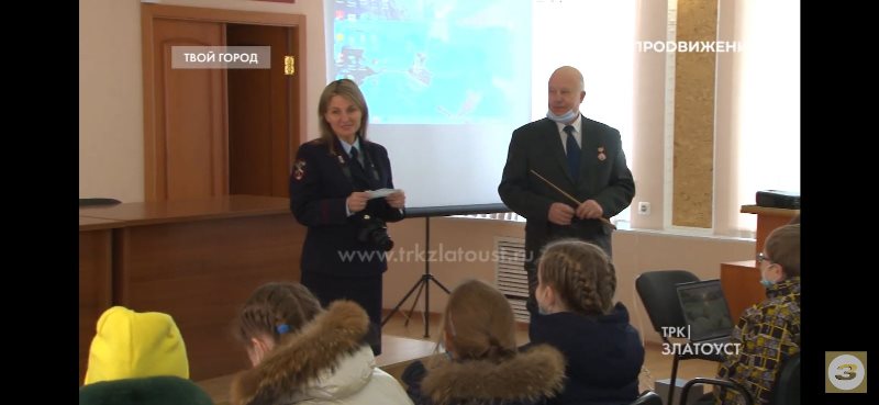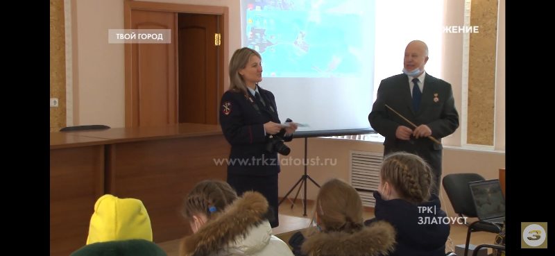 После небольшой прогулки экскурсию продолжил председатель совета Ветеранов при ОМВД РФ по Златоустовскому городскому округу Владимир Бобылев. Почетный ветеран МВД предложил ребятам для просмотра короткометражный фильм об истории создания праздника, посвященного Международному женскому дню 8 марта.