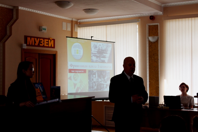 Далее учащимся был продемонстрирован видеоматериал о героях златоустовцах. Ребятам рассказали о тех, кто прославил наш город своими подвигами, многие из них погибли на полях сражений. В Златоусте на Мемориале Славы для жителей города в 2017 году открыта Аллея Героев. В едином ряду расположены бюсты 18 героев Советского Союза, которые совершили подвиги в годы Великой Отечественной войны.