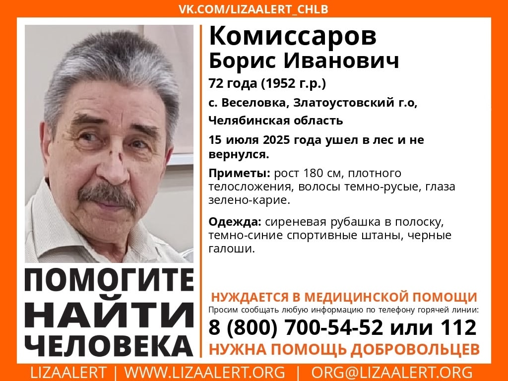 Продолжаются поиски жителя Златоустовского городского округа, ушедшего в лес 15 июля 2025 года в селе Веселовка. Отдел МВД России по ЗГО просит оказать помощь неравнодушных граждан. Сбор волонтёров и распределение их по поисковым группам ежедневно по адресу: с. Веселовка, ул.Пугачева,65.