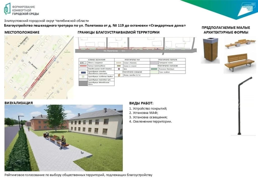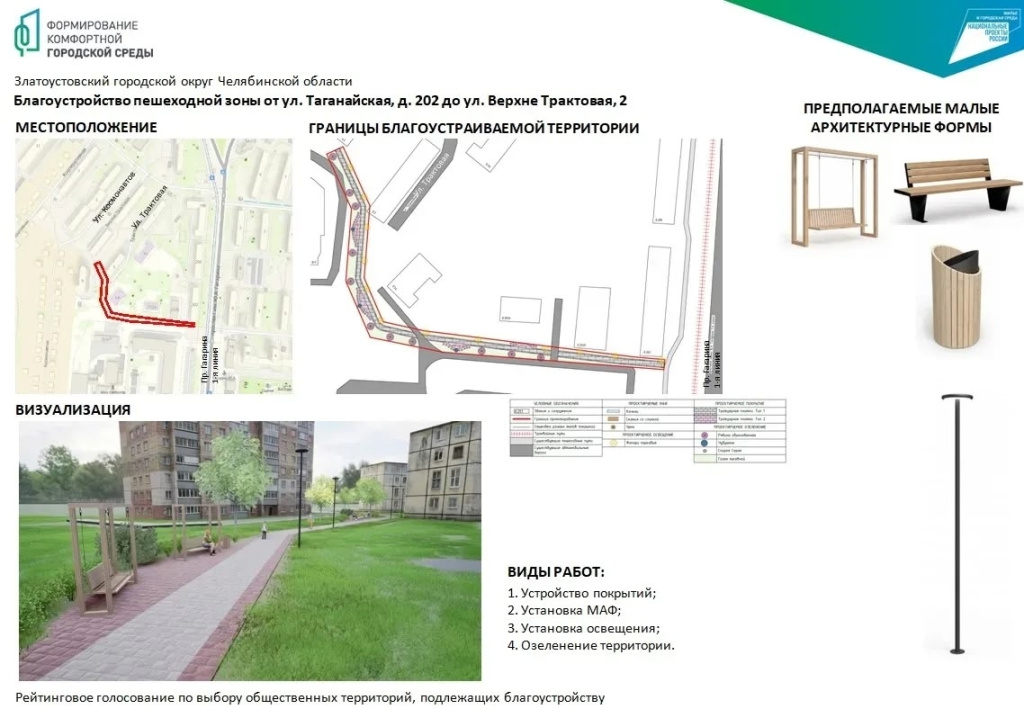Глава Златоустовского городского округа Олег Решетников подчеркнул: «В это раз наш главный приоритет – пешеходные зоны и тротуары. Мы пользуемся ими ежедневно. Именно они делают город удобным для прогулок, поездок на велосипеде и повседневного передвижения. Именно от горожан зависит, где появятся новые прогулочные дорожки, освещение, скамейки и зеленые зоны».