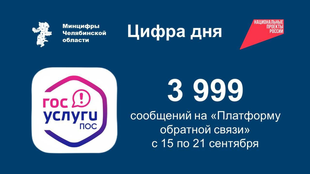 Всего с 15 по 21 сентября поступило 3 999 сообщений через Платформу обратной связи.