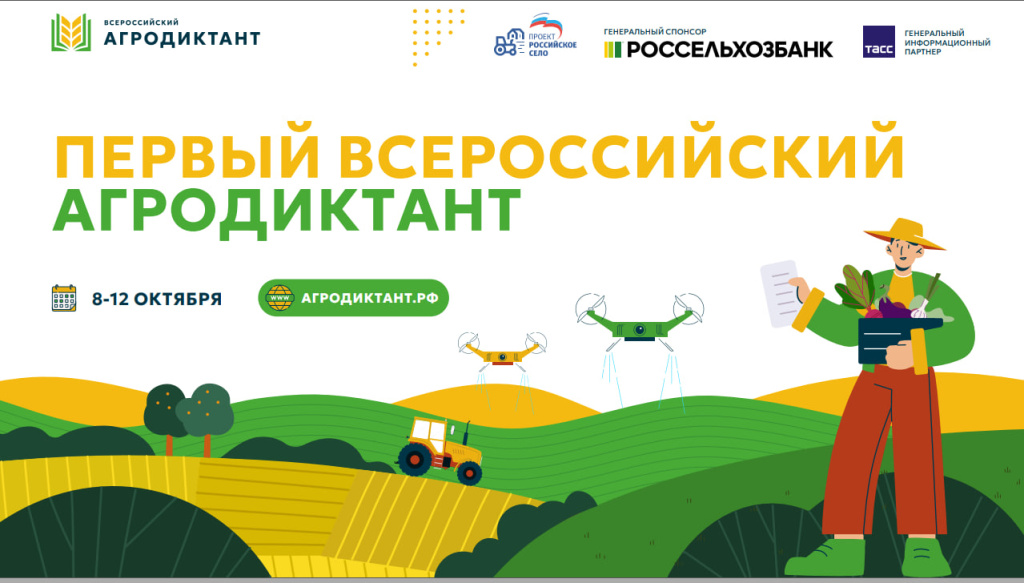 С 8 по 12 октября 2025 года в России впервые пройдет Всероссийский Агродиктант. Приглашаем всех желающих проверить свою грамотность в сфере АПК!