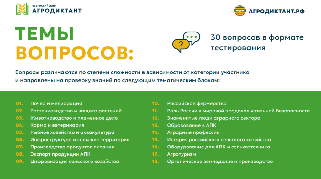 -Формат: онлайн на сайте агродиктант.рф или офлайн на площадках города.