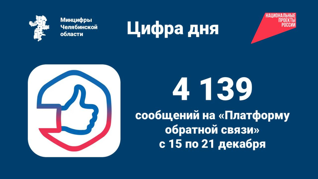 Всего с 15 по 21 декабря поступило 4 139 сообщений через Платформу обратной связи.