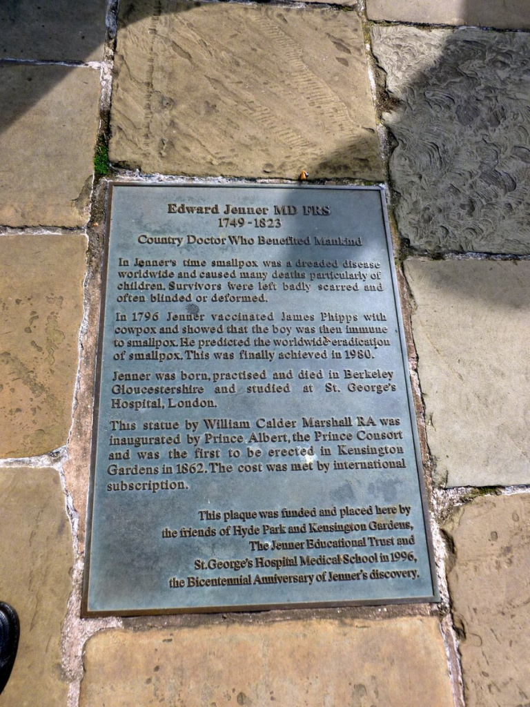 В 1996 году, в ознаменование 200-летия медицинского эксперимента с вакциной против оспы, в тротуар перед памятником Дженнеру вмуровали табличку, объясняющую заслуги учёного перед человечеством.